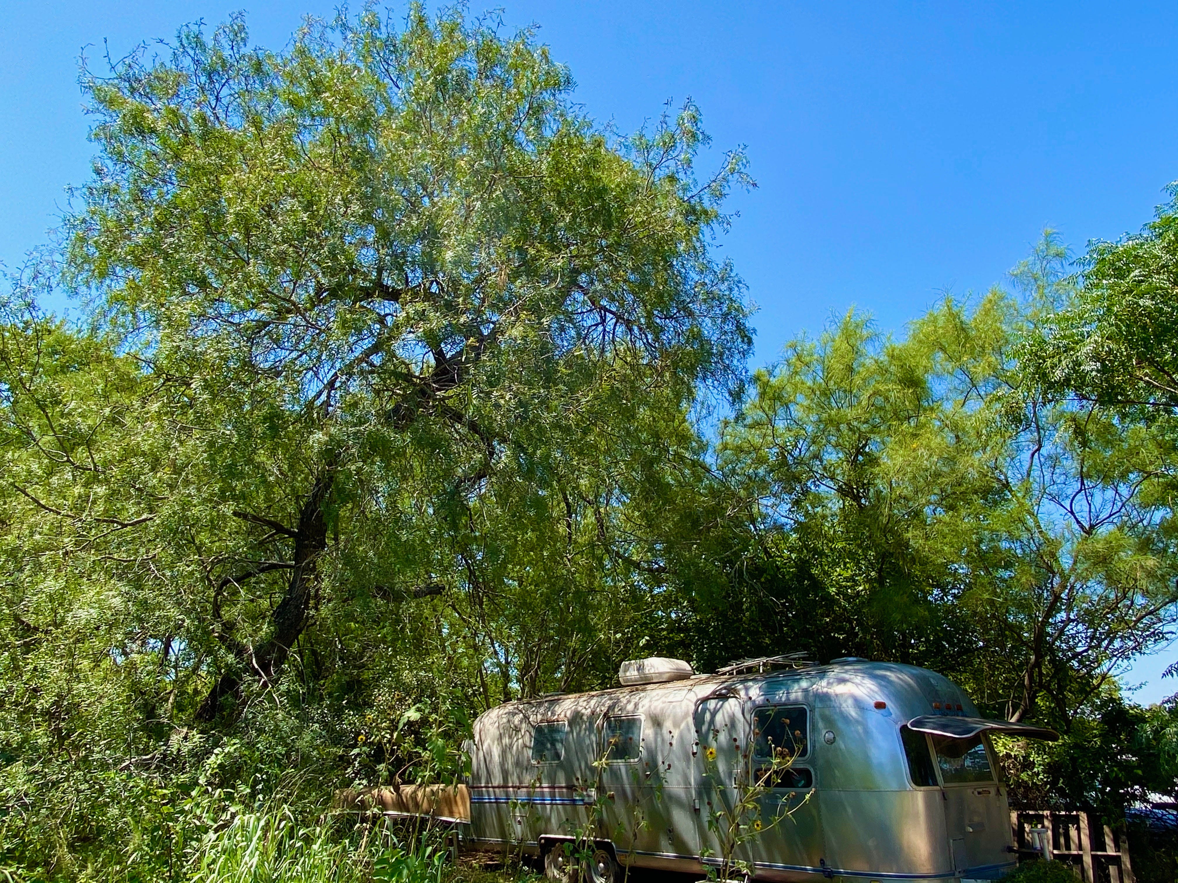 I had inspected the tree earlier in the week, when a Zoom call I was on was interrupted multiple times by tapping on the door. When I finally got up to check, I realized it was just a group of parakeets up in the mesquite, pigging out on ripe seedpods and casting the remains onto the aluminum hull of the Airstream. Not unlike the guys from the door factory next door who have a curbside happy hour every Friday from five til sundown and toss their empties to the curb (unlike the parakeets, they come to collect them on Monday).