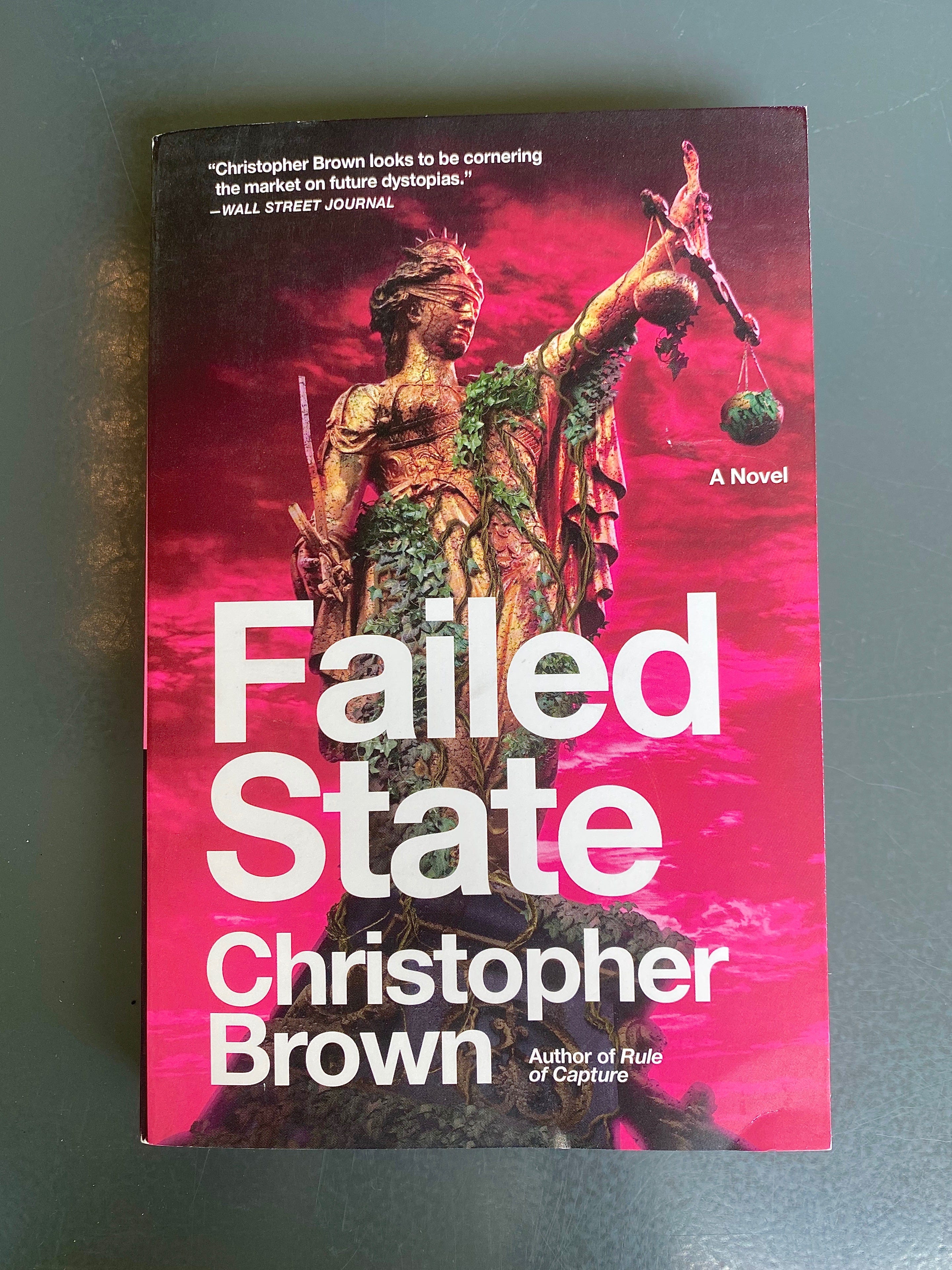 In my new book out Tuesday, I try to play with this idea of the post-apocalypse as being not so much dystopia as the counterintuitive path to utopia. It’s set largely in a hurricane-ravaged New Orleans whose inhabitants have declared an autonomous zone and begun to beta-test a greener future, radically rewilding the city. It’s also a lawyer story, which gave cover designer Owen Corrigan of HarperCollins quite a challenge—convey this idea of the collapse of civilization being a new dawn, while at the same time cueing that it’s a legal thriller. I finally got my hands on my first print copy Friday, in this year of digital galleys and bookstore closures, and his amazing design looks even better in person:
