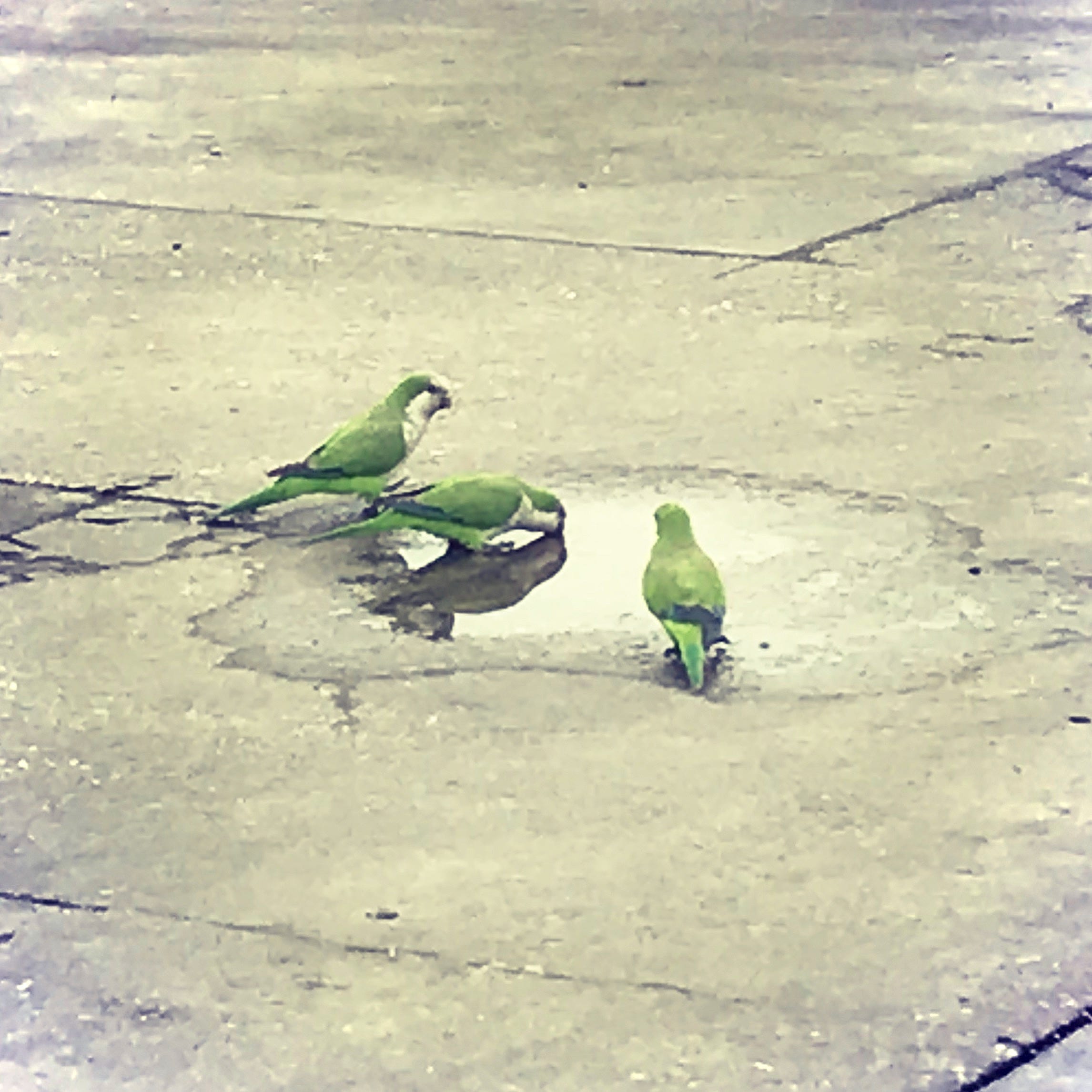 The lore is that a crate full of monk parakeets smuggled from their native habitat in northern Argentina broke open on the tarmac of JFK airport in 1967, releasing the birds into the edgelands of the outer boroughs. They proved adept adapters, and in the years since have colonized most of the American coast from Connecticut to the Gulf of Mexico. They love to use man-made structures as the base for their big nests, especially power poles and electrical substations. There’s a big colony on the cell phone tower behind the 7-Eleven down the street, next to a paved creek, and every time I run or walk by there they are out doing their thing (the picture above is from the 7-Eleven parking lot). Fully naturalized to this Anthropocene habitat, they remind us that we are an invasive species too.