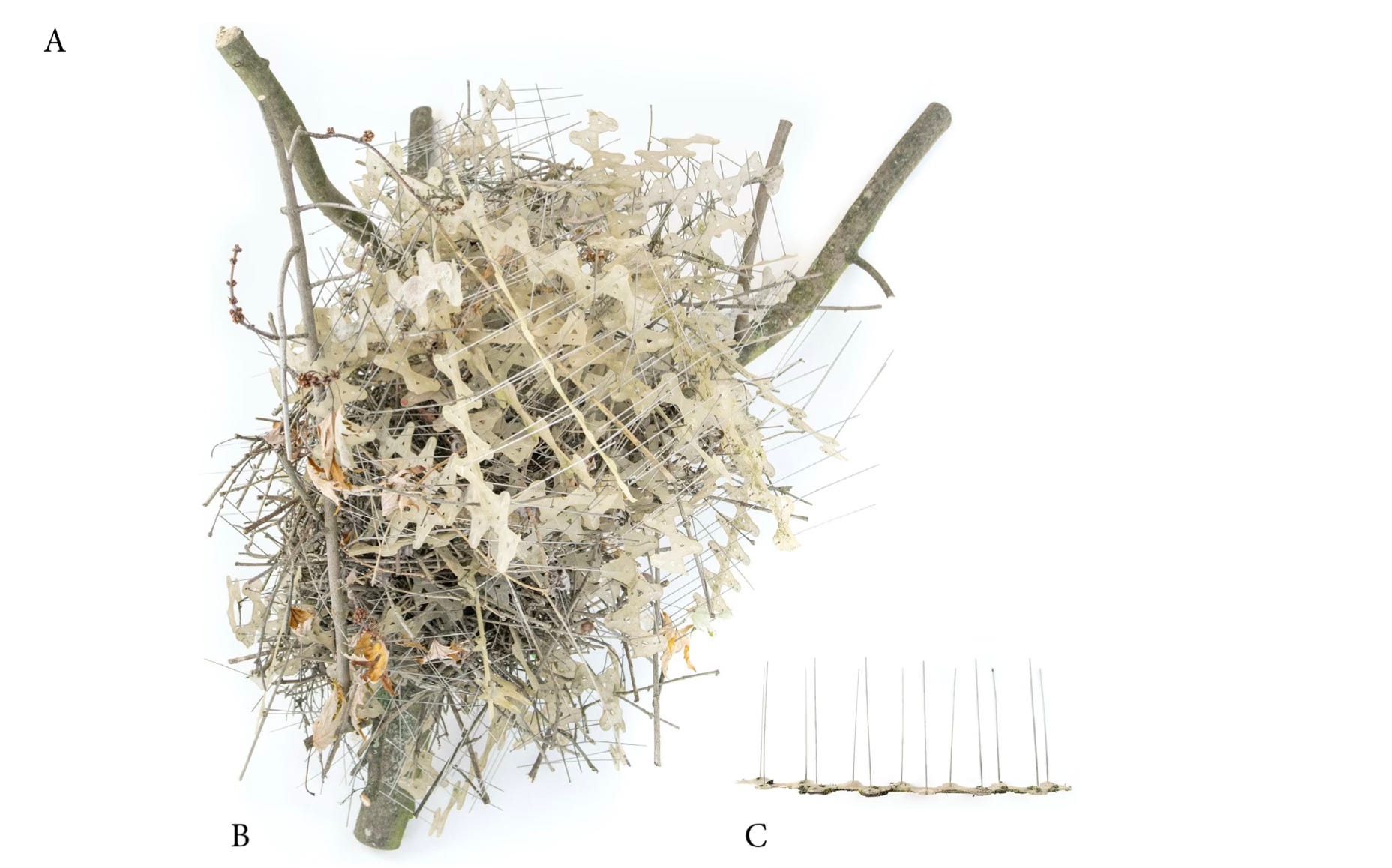 The week before, I had come upon three of the sturdier nests of the northern cardinals that live around our house. They had been constructed in the lattice of cross vine that hangs from our green roof over our living room windows, using a mix of dried grasses and twigs, and industrial materials harvested from the factories and warehouses that dominate our neighborhood.