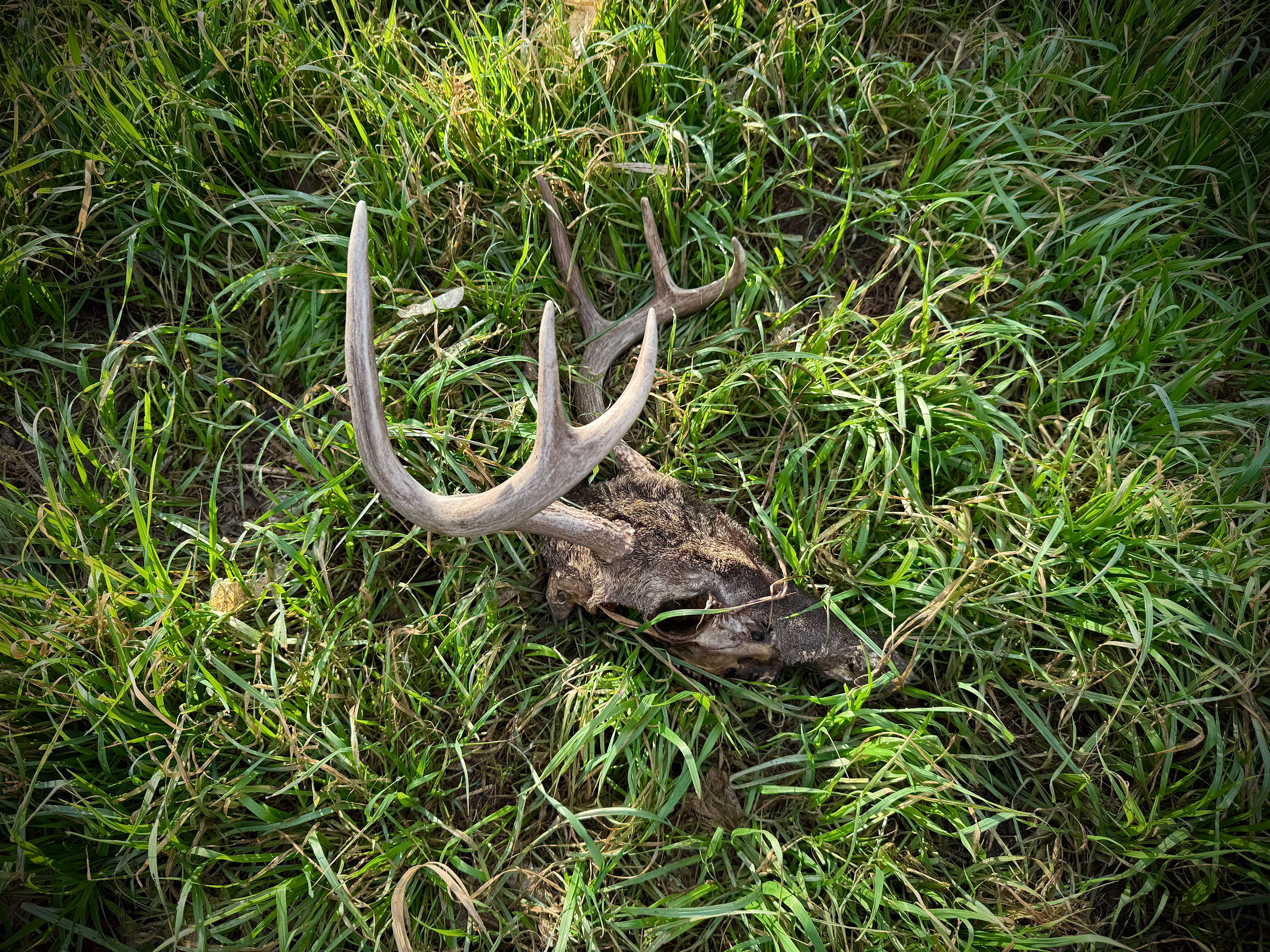 One morning last week, our year-old Jack Russell Terrier and I found three skulls in the weird woods behind our house. Fifi (so named by our six-year-old daughter) found two of them, proving herself a more capable field companion than I had expected from her homuncular scale. The most remarkable of these totems was the stag pictured above, which she found a few feet away from the carcass I had stumbled upon; the opossum she found still attached to its spine was also pretty intense. The doe skull had been out there for years, evident from rain-bleached white bone. We did not take them as omens; just signs of the season, when the foliage is at its barest, animal trails are easier to follow for the bushwhacker, and things are easier to spot when you do. In a couple of weeks it will be over—the invasive brome grass is already beginning to carpet the forest floor, crowding out the natives by coming up before them, and the spiderwort came back strong this week, flourishing in the dirty soil of ancient bluffs polluted with illegally dumped construction debris slowly sinking into some Anthropocene geological layer.