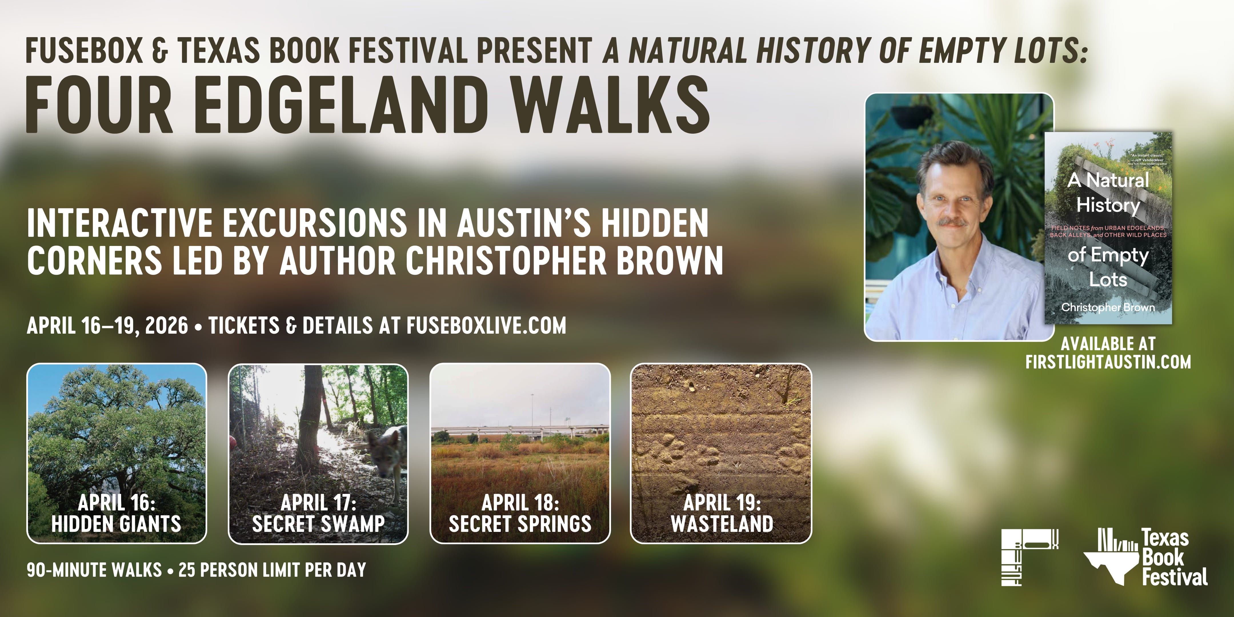 I’m also really excited about this upcoming event announced Tuesday, the first-ever collaboration between the Texas Book Festival and Fusebox, our amazing local performing arts festival. Unfortunately, all the tickets sold within a day! So if you are in Austin and want to go for a walk but didn't get this news in time, feel free to email me and we’ll work on one just for readers of this newsletter.