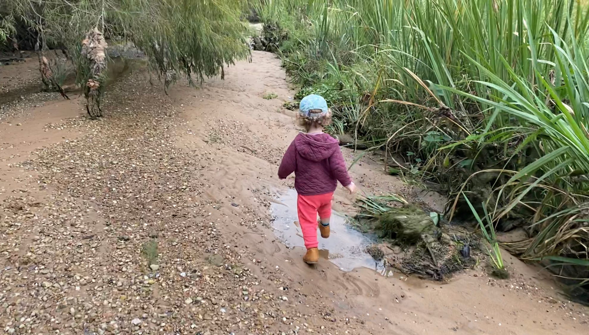 During the day between rabbit and bobcat’s nighttime visitations last weekend, my daughter and I went for a long hike along (and in) the urban river. She’s around a year-and-a-half now, fully evolved to bipedalism, and ready to explore. Pretty fearless, as we saw at the beach over the summer when she would charge into the surf. When I let her down from the baby backpack, she was off and on the move almost faster than I could keep up with. And in that hour she saw probably more wildlife than I saw in most of my childhood, if you don’t count animals in zoos.