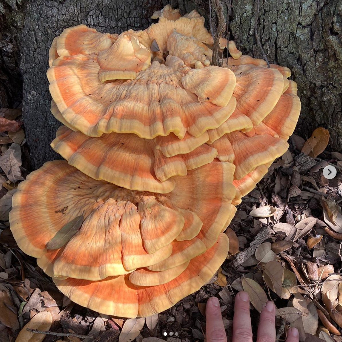 Laetiporus sulphureus is often called sulphur shelf, and sometimes crab of the woods, but most of the foragers call it the chicken of the woods. Here it is as Jesse found it, in a photo he took and shared on his awesome and outdoorsy Instagram feed.