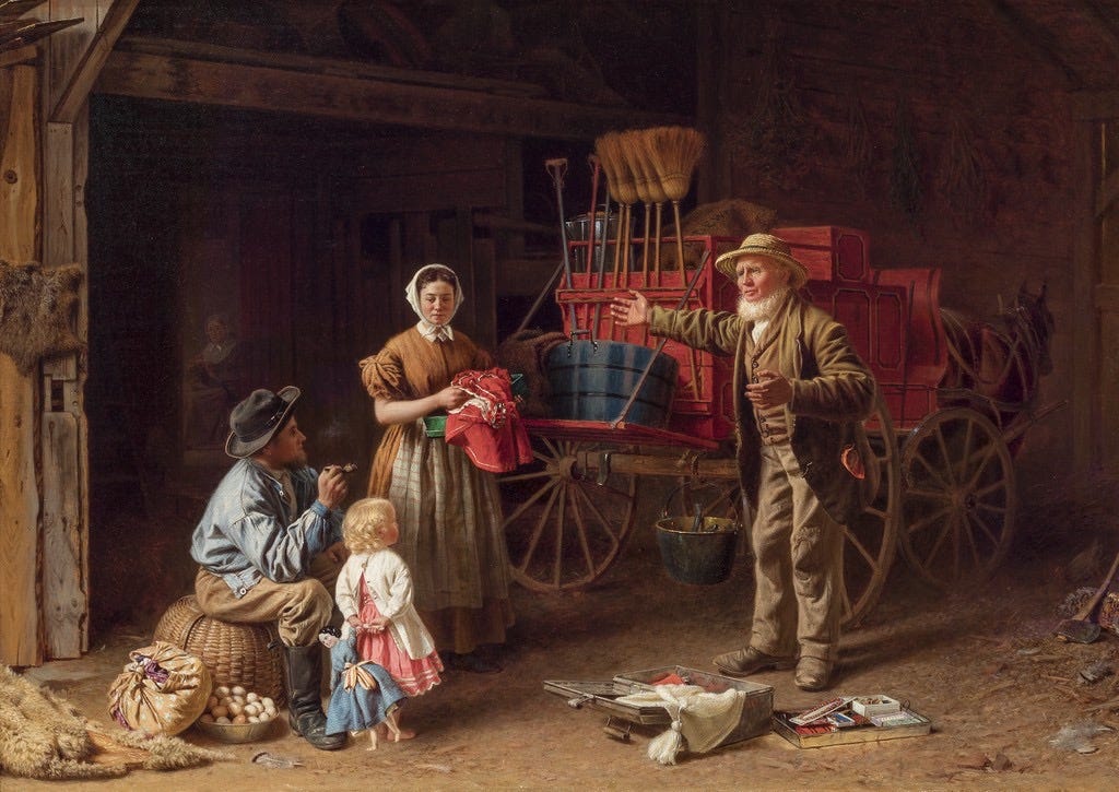 The one I was least familiar with was the figure of the Yankee peddler—the lanky trader who rolls into town with a cart full of shiny trinkets, only to sell the gullible locals things they already own. But once I read Rourke’s fascinating cultural genealogy of this peculiarly American photo-capitalist trickster, I realized he shows up all over the place, under different names. His descendants include the Duke and Dauphin from Huckleberry Finn, the Wizard of Oz, the grifters of noir fiction and film, Harold Hill of The Music Man, Duke from Garry Trudeau’s Doonesbury, Gordon Gekko, the traveling salesmen of 50s and 60s sitcoms, and Tony Robbins and all the other white-toothed men and women selling the secrets of success in a million infomercials.