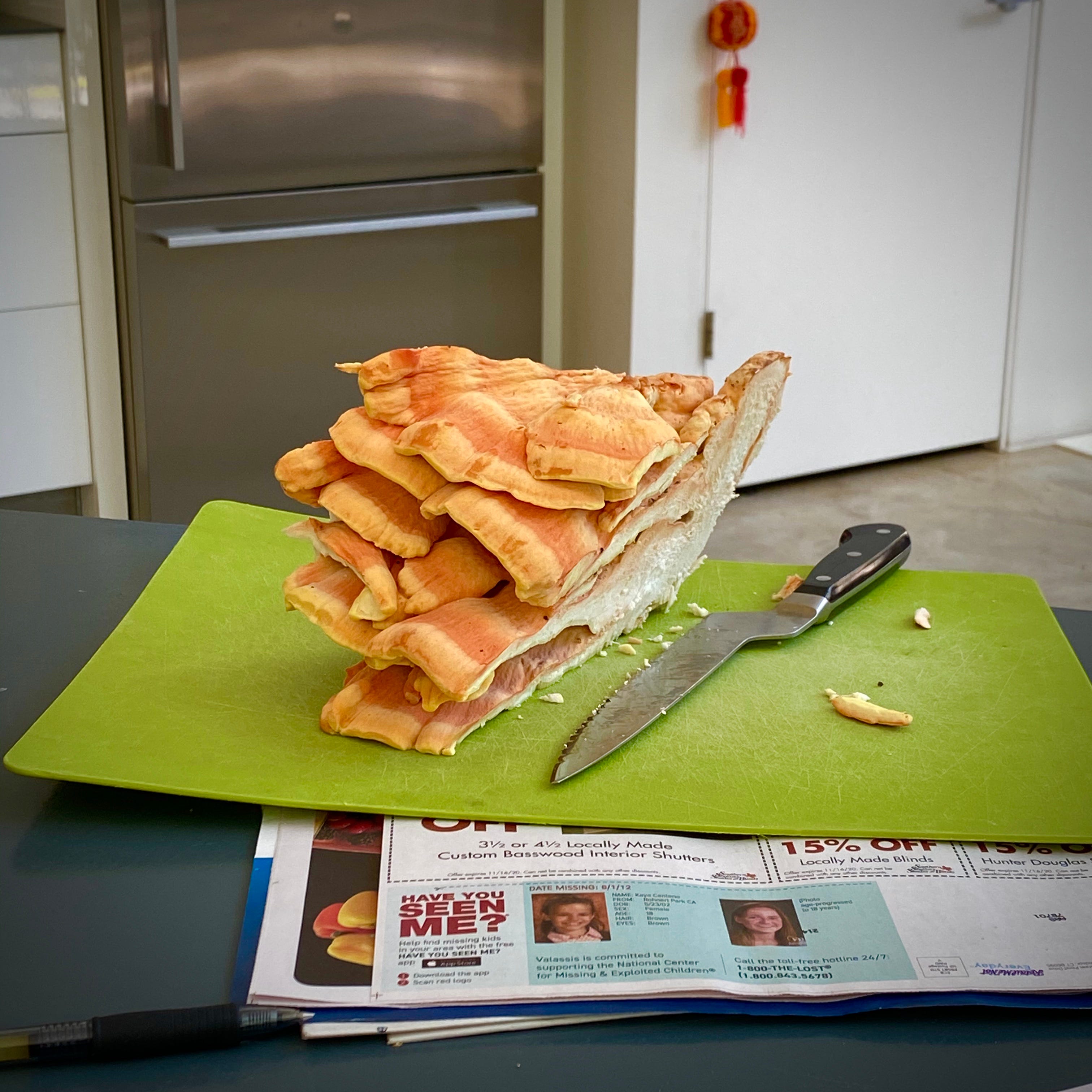 I was out for a trail run the other day when Jesse called, and asked where I was. It turned out he was right at the entrance of the park I was running through, with mushrooms to share. Or, more accurately, one big-ass mushroom to share. Moments later, Jesse was there in his Tacoma, smiling and holding a mushroom cutting the size of his head. And a little later, he met me back at the house for a delivery, after making a bigger delivery to some mutual friends.