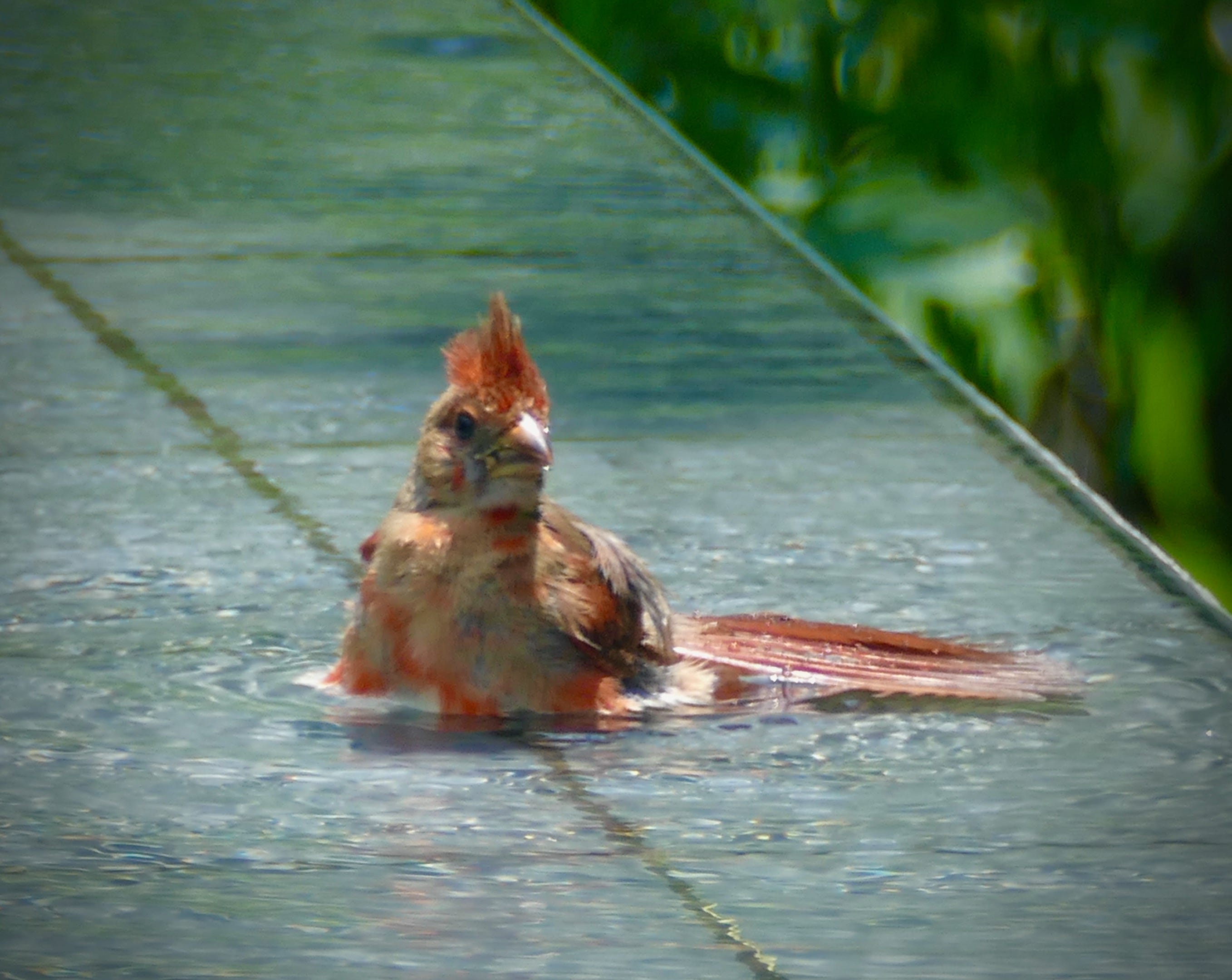 The juvenile songbirds usually exaggerate their species’ distinguishing features, like this young male cardinal with a crested ‘do that reminds me of the Echo and the Bunnymen-ready haircut I had in the mid-80s.