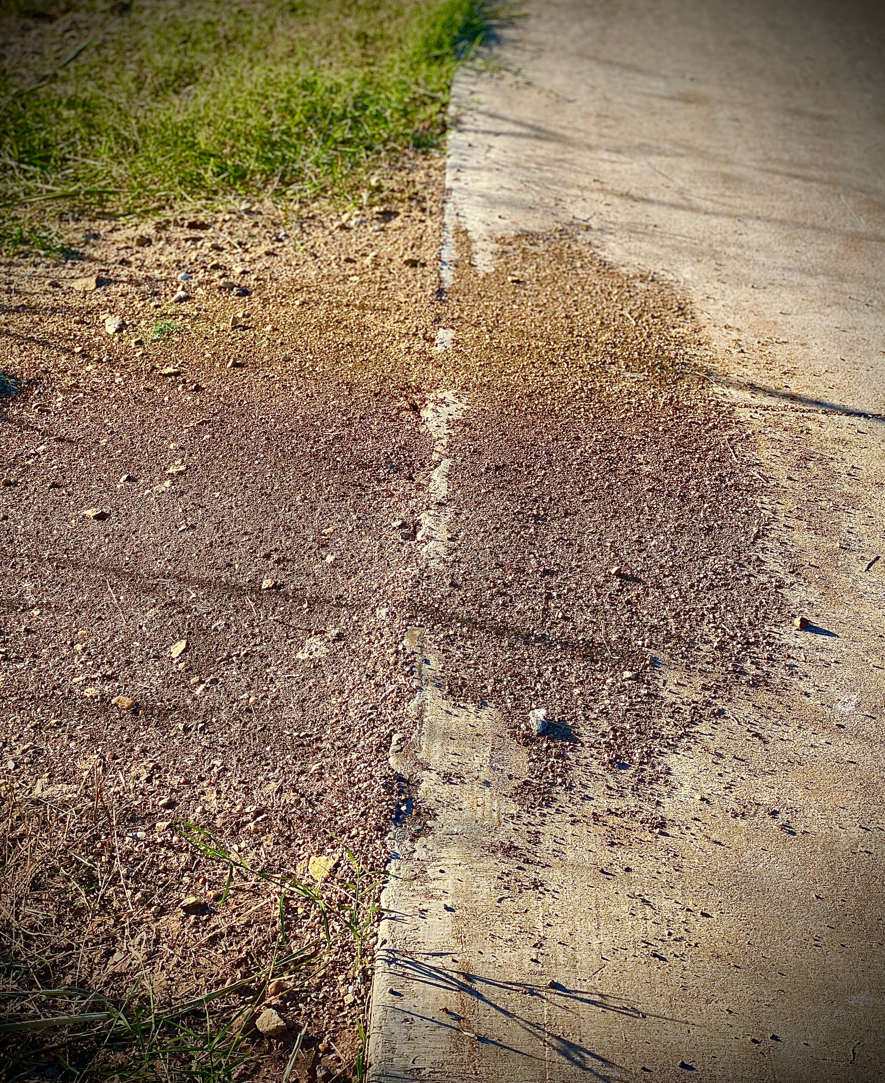 Our front door colony finally disappeared a few years ago—not from extermination, but from a yard so feral with vegetation that they couldn’t keep the plants at bay. Or so I thought, but in the past week, harvester ants have reappeared on our main trail. It might be a new colony, but it is nice to see them. If we pay more attention to what they have to teach, who knows what we might learn.