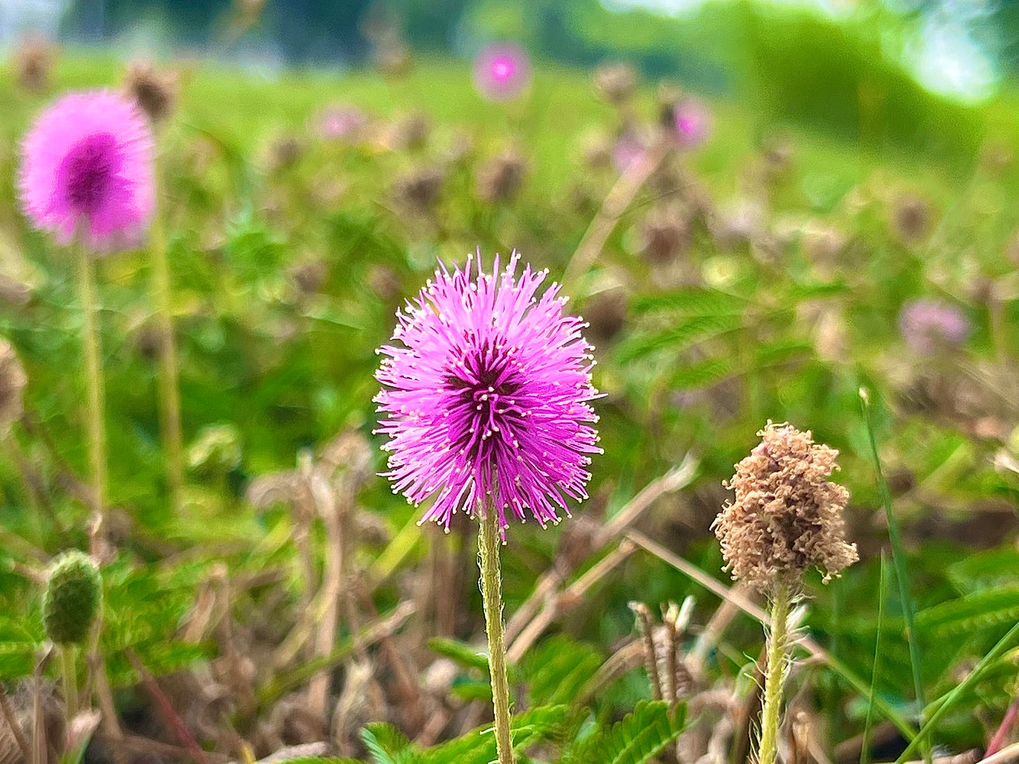 The books we write now don’t hold much promise on that subject. But the wild world that persists in the margins of the city reminds us that nature’s resilience is greater than we might think, and that you will often be surprised what fresh wonders emerge from the decay that comes to all things. Like the hot pink powderpuffs I encountered Saturday morning just down the street from that entropic strip mall, flowering in a tiny roadside patch at the entry to the new motor oil distribution yard, so small you might not even notice them as you walked by, and definitely wouldn’t see them if you were driving by. The guys with the weed eaters will probably come cut them back this week, but you can bet the mimosas will still be propagating when the oil jobbers have become fossils themselves, and the world we leave behind for those bugs will be brighter than they expected.
