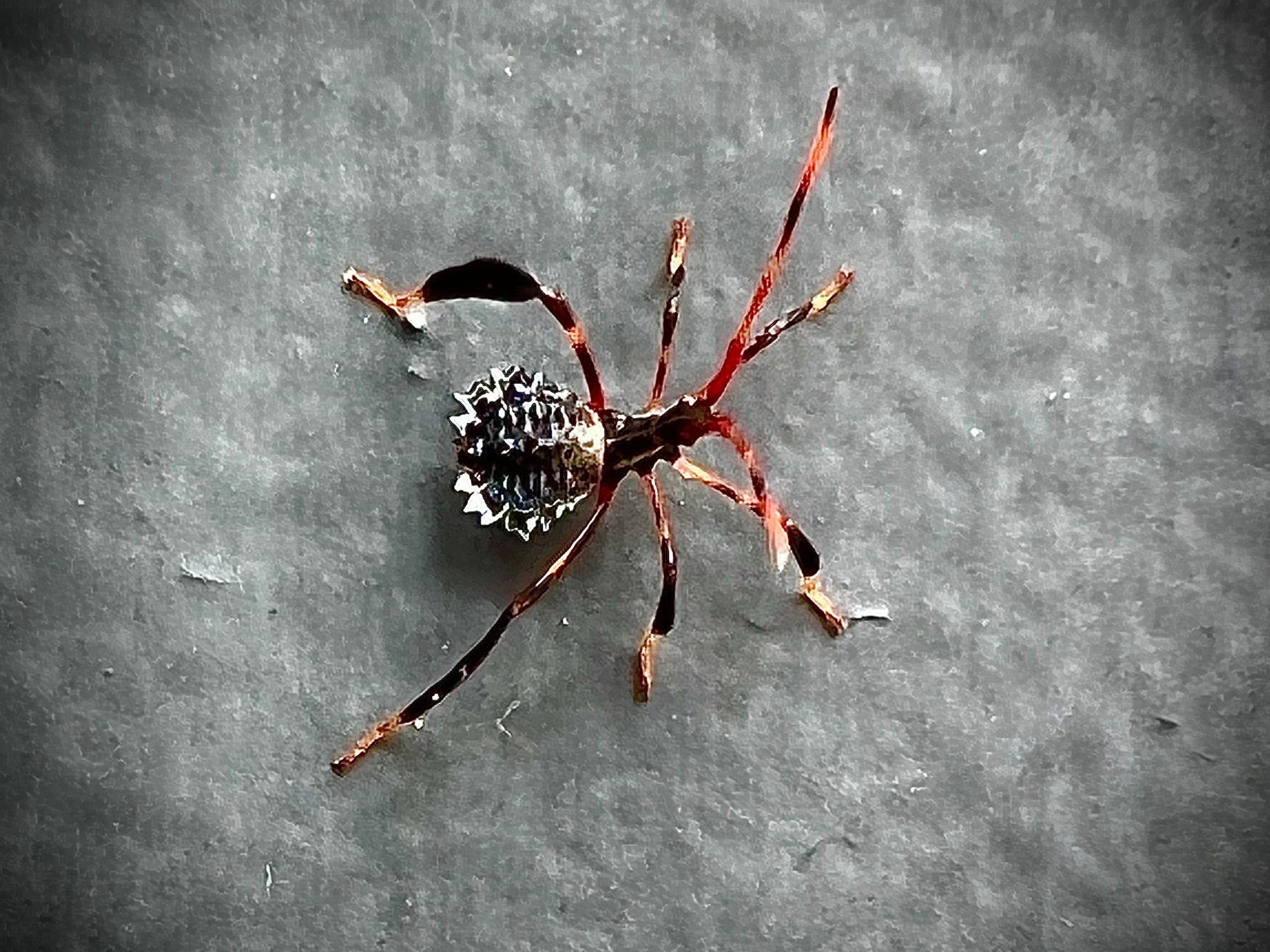 Wednesday afternoon I was chatting with my wife through the door to her office when I noticed the Giger-esque scene of a grasshopper molting, three extra legs emerging from its ass-end. I couldn’t even tell at first which parts were the new and which the old, confounded by the patterns of pigmentation and the absence of motion. Then when I looked away for a moment I saw that the new body had stepped out of the shell of the old. I think it’s one of the Aztec spur throats whose brightly-colored juvenile forms appear so often on those windows, and whose Pokemon-like cycles I am only beginning to parse.