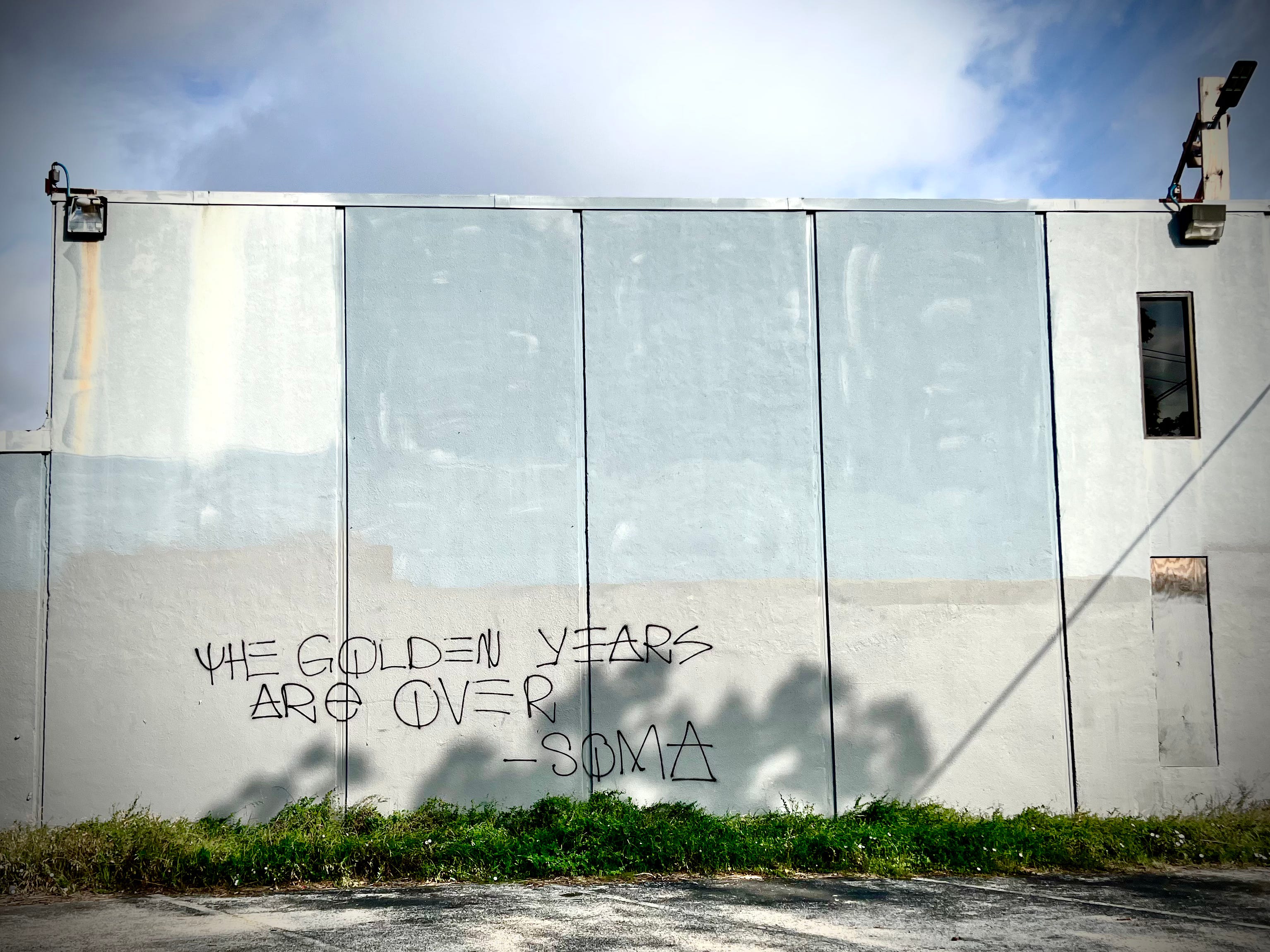 On the wall of the lighting factory behind them, a tagger named Søma had painted a new message the night before: THE GOLDEN YEARS ARE OVER.