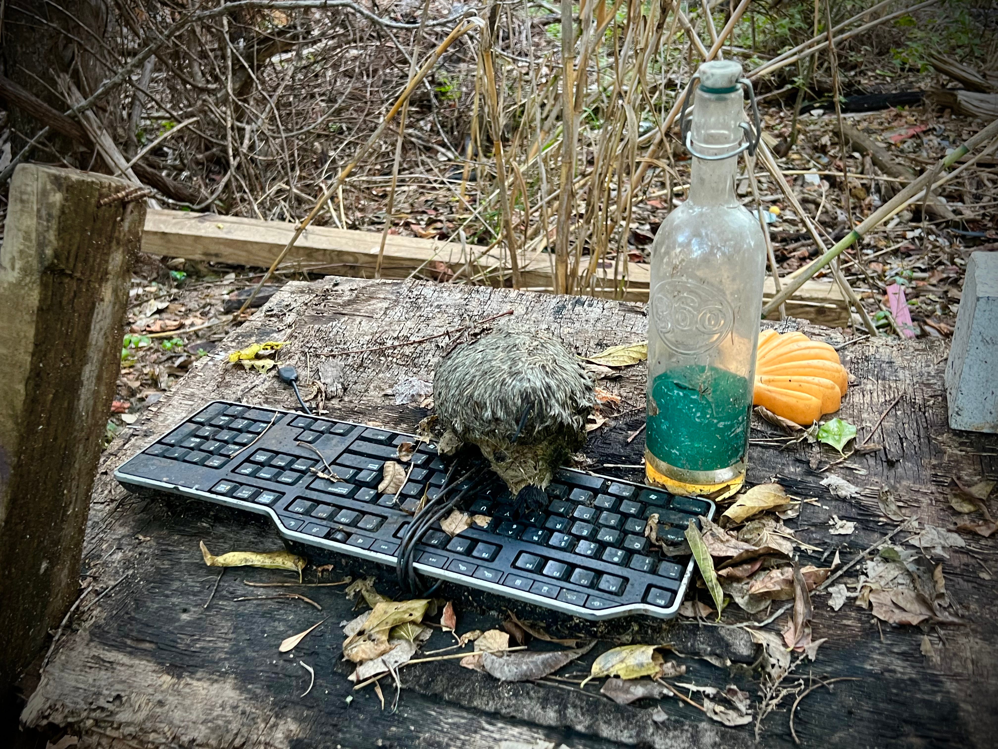 Down in the woods behind it, the coyotes have been yipping, summoning the season of folk horror that comes with long nights and fur-friendly weather. Though the only fur we saw that morning was on a man-made hedgehog we found with its paws on a flotsam keyboard in the old Swamp Camp. I wondered if it was an elfin riff on the famous Isaiah Berlin essay, which later got repurposed as business book wisdom about the virtues of specialization for those who want to make more money. There are no real hedgehogs in those woods, only foxes, who do well in the margins of our dominion. Perhaps there’s an alternative parable in there.