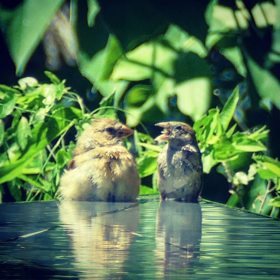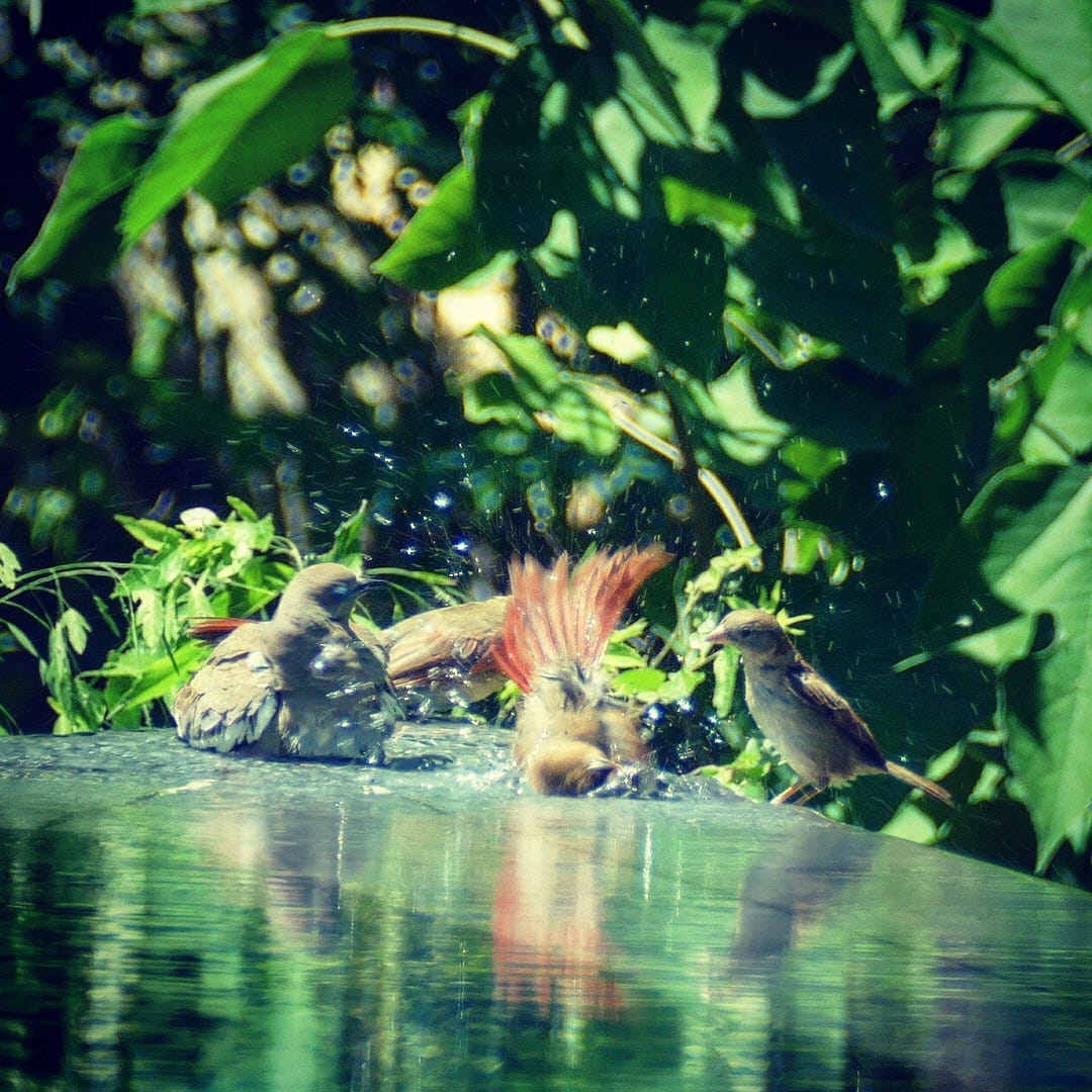 Our small dipping pool is chlorine-free, using a system that makes it like fresh water. The water flows over the negative edge in a constant circulation. We did not know when designing this that it would work as a giant modernist bird bath. But birds love the sound of the running water, and the water is clean. Soon the teen bird pool parties will begin. An accidental adaptation, but one that teaches that the more you design along the same lines as the natural environment, the more your habitat will allow sharing your space with other species.