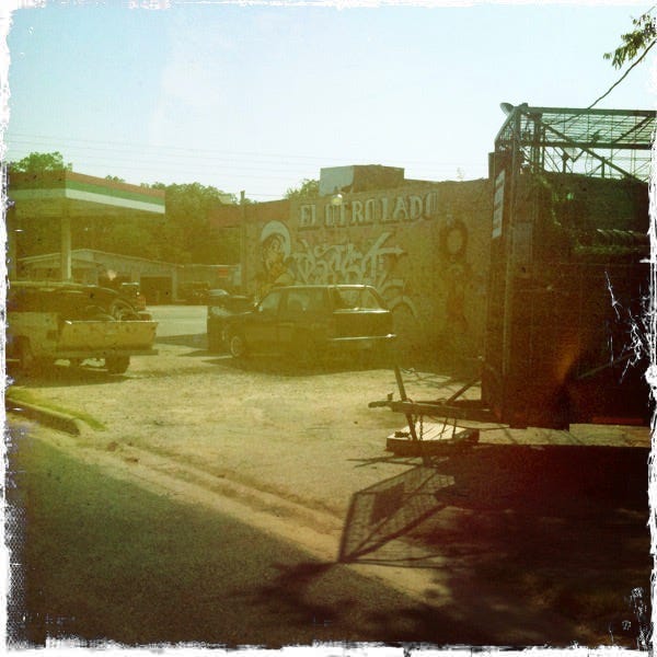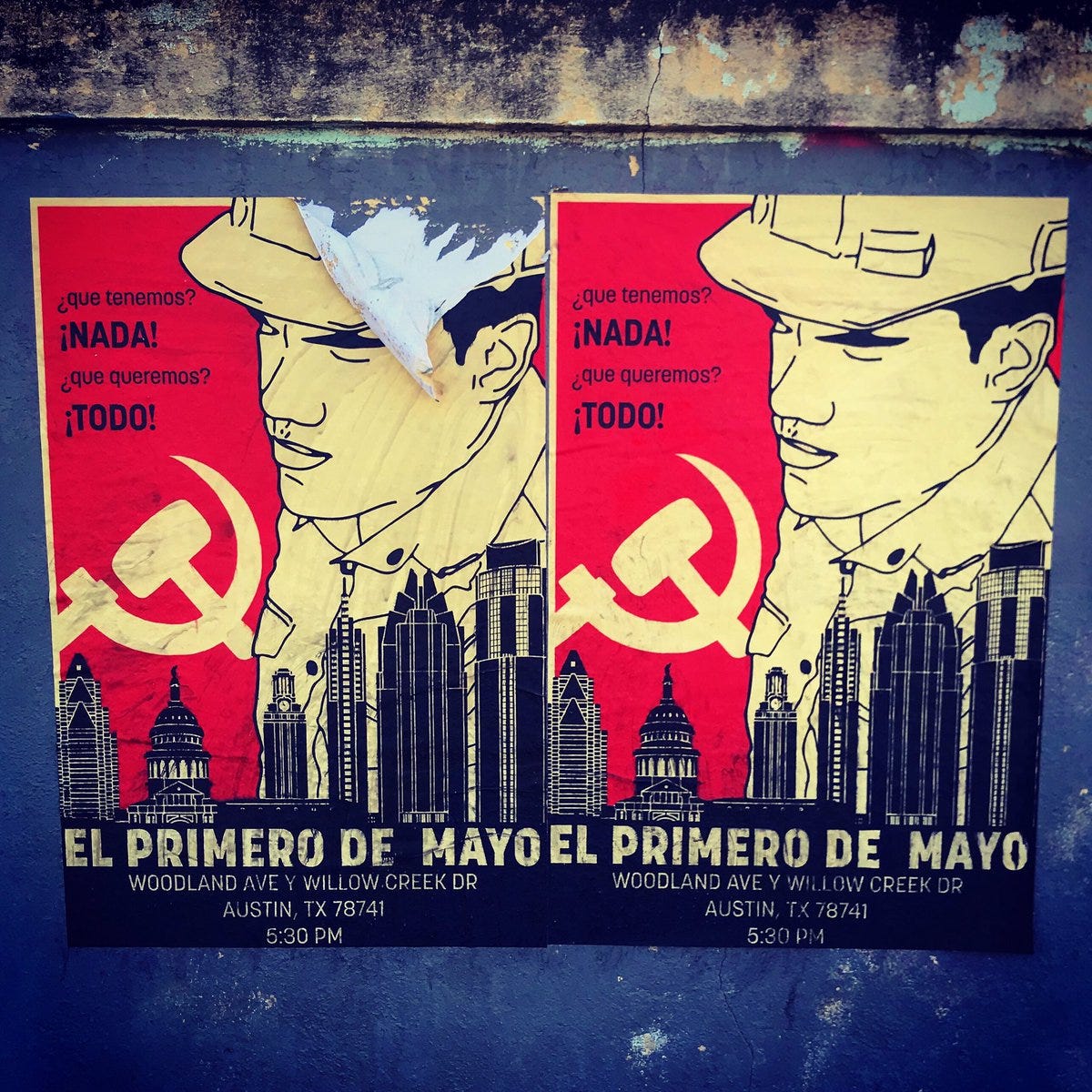 I came upon the above poster last summer two short blocks from our house, the day after I read an article about Sendero Luminoso. This wasn’t long after I had sat down for lunch at my favorite vegetarian Tex-Mex joint and witnessed a mob with those same red bandannas over their faces and megaphones in their hands, protesting the redevelopment of the old llanteria across the street. Gentrification is colonization, I thought, and is producing more radical futures than the Chamber of Commerce can imagine. And the dystopian novelist in me always wonders at what point the megaphones and placards get replaced with Kalashnikovs.