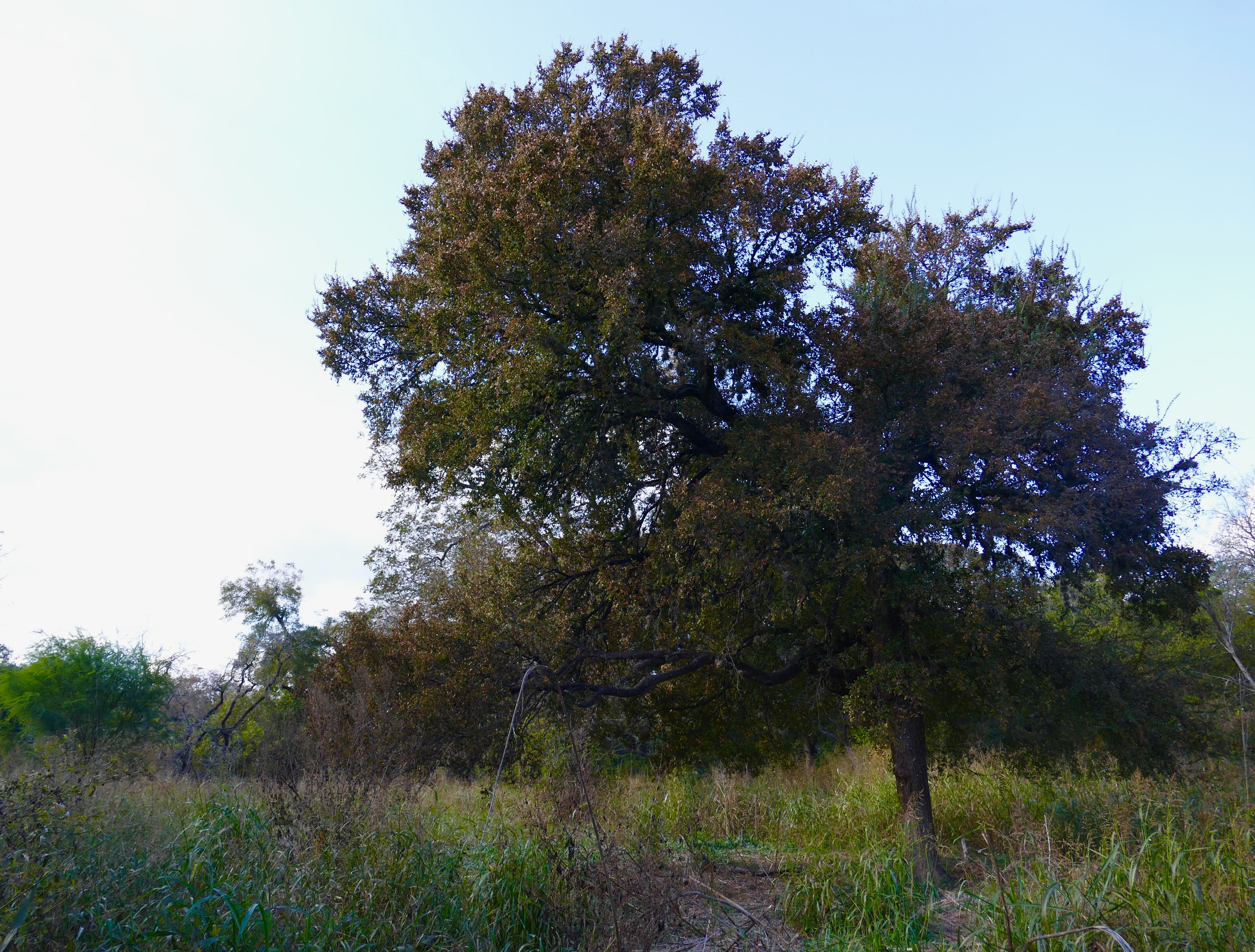I heard its cry as it evaded my gaze, while through the trees I heard the sounds of builders hammering nails into lumber at an apartment building behind the trees. A flock of some speckled little sparrows settled in the bare branches of a small tree with one big fat dove, backlit in the weird afternoon light. The ground hosted more native plants than I expected—inland sea oats and switch grass maintaining a stalemate with the Johnson grass. Lots of deer sign, and evidence of a very dense population of raccoons tracking along the creek’s edge, back there where the paths lead up the hill to the dumpsters behind the frontage road restaurants. I wonder if the trash pandas have found the leftover sushi.