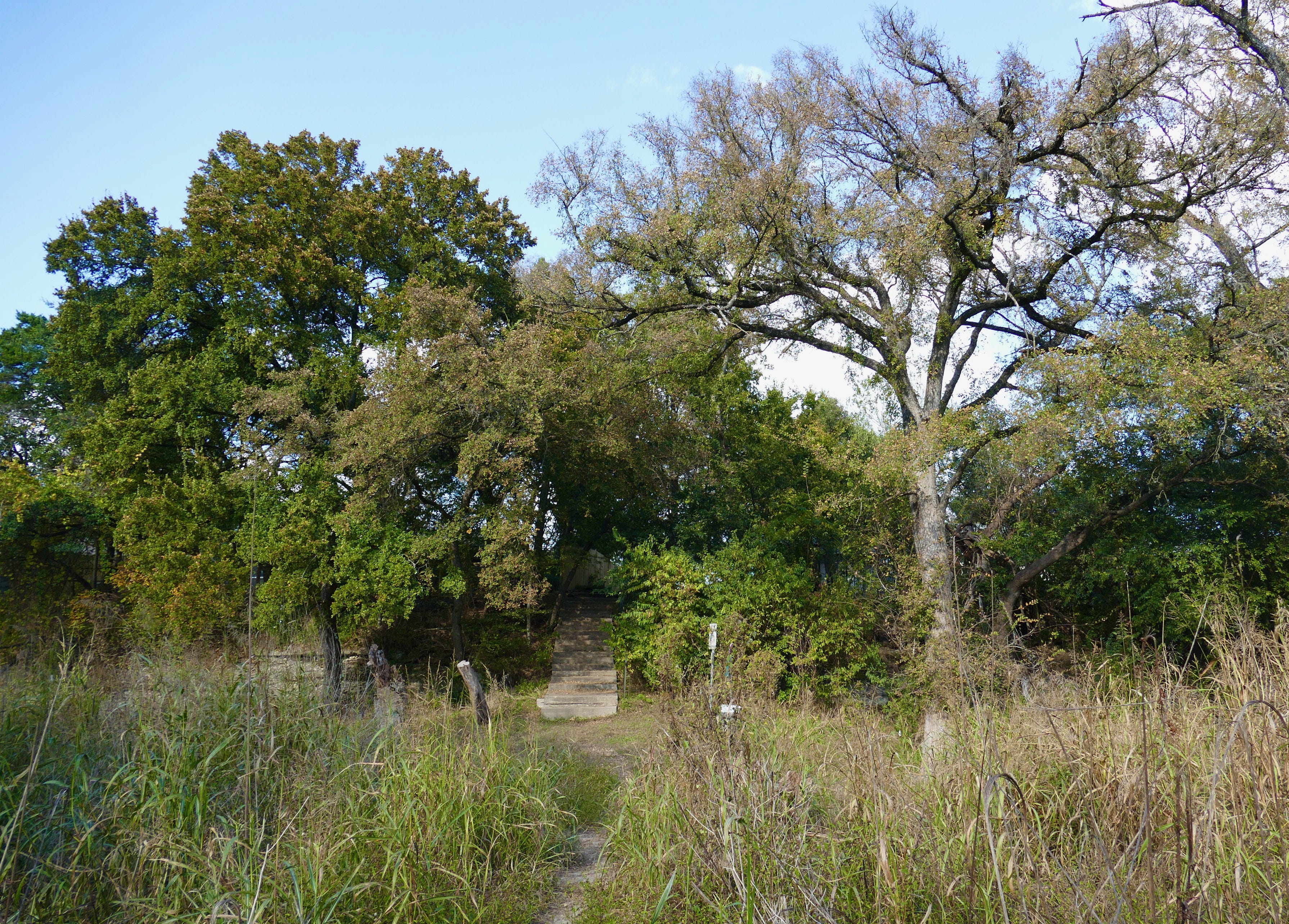 I walked through that low plain of old oaks and wild grass until I finally found a path, and followed that to where a collapsing concrete staircase ran in a narrow corridor between two houses.