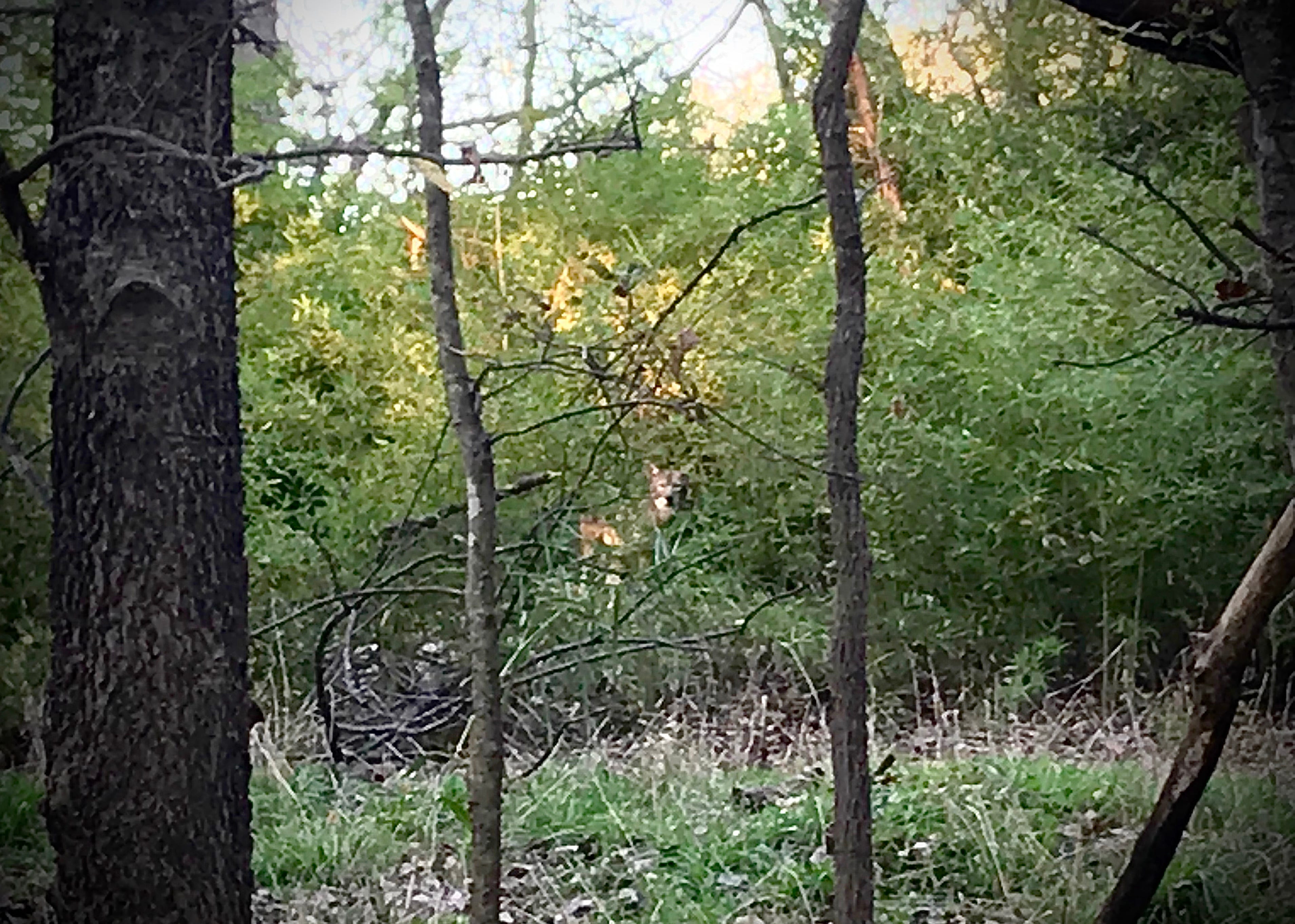 The coyote saw us first, and immediately stepped into the thick cover grown up around the drainage ditch, the one with the old TV and the pop bottle fragments bearing the logos of long-forgotten brands. We followed its scent-track along the treeline, and then down into the secret swamp. A good place to get lost, and one we had not visited in a while.