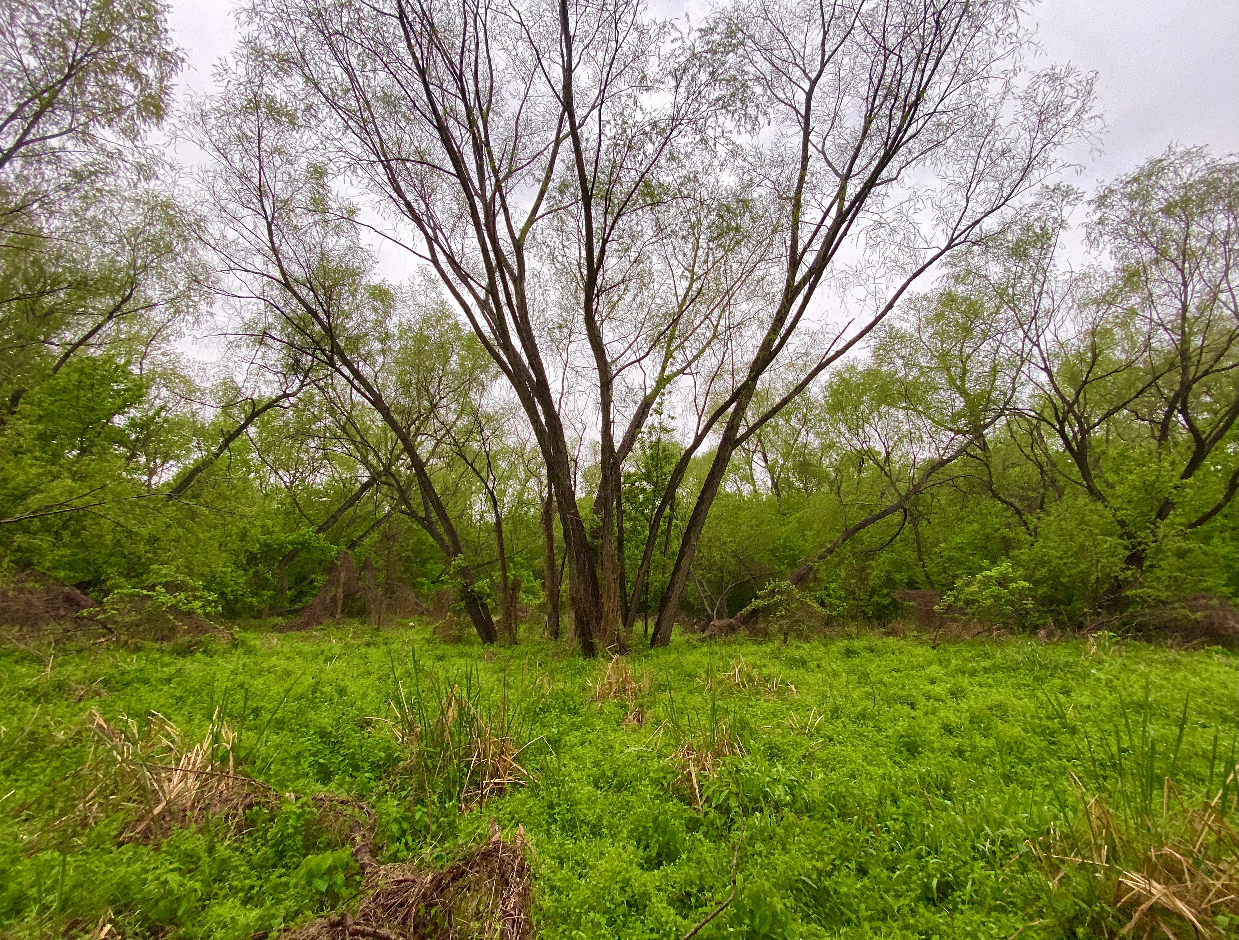 February’s winter storm hit the flora of our urban wetlands hard, making that normally lush zone easier to traverse than usual. The cleaver that grows like weedy Velcro had carpeted the area normally thick with tall water grasses, and you could see how the spot was in the process of becoming something else. Harder ground, maybe that could support heavier trees than the spindly willows that stood out in clearer relief without the jungle foliage at its base.