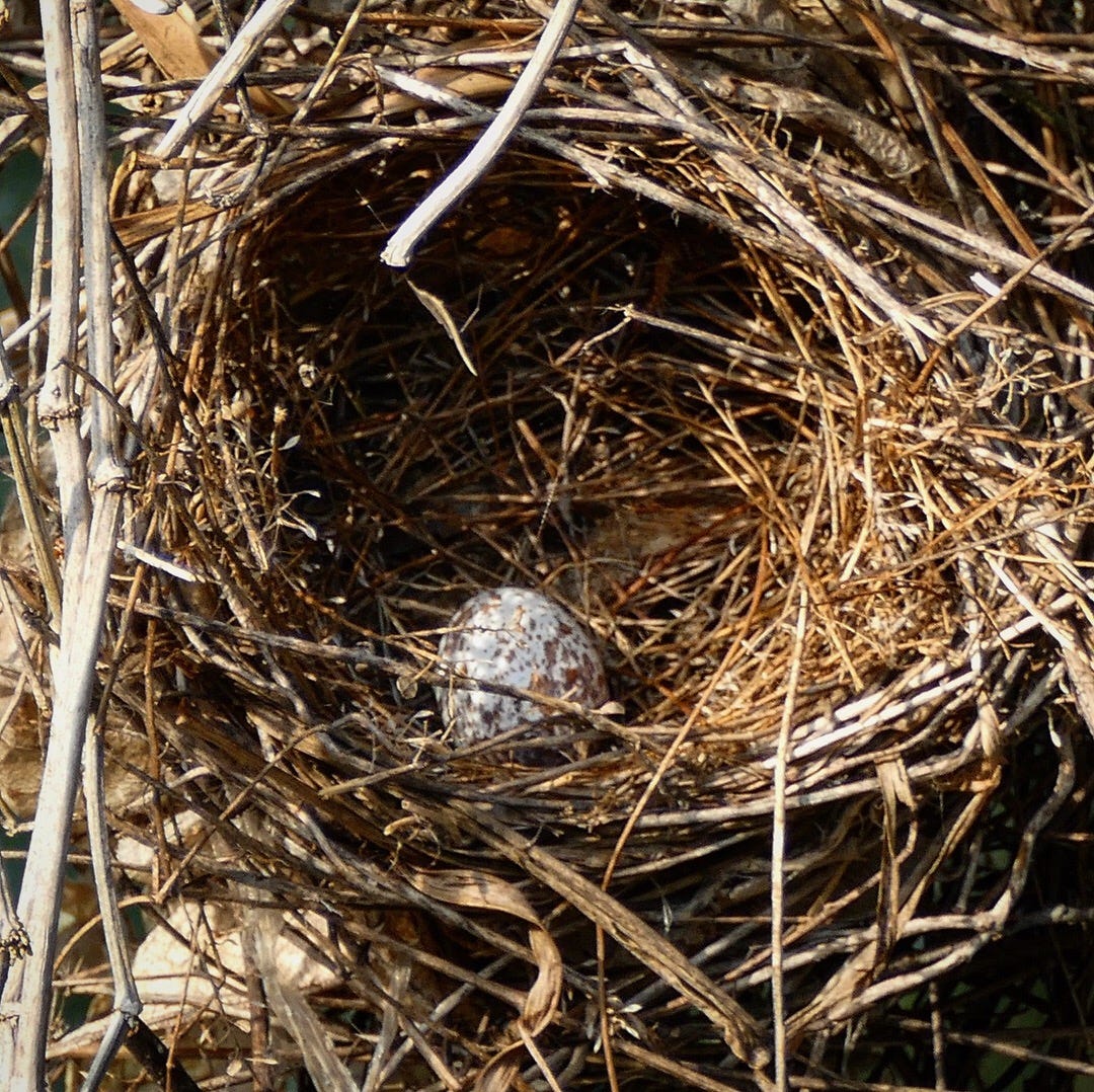 We didn’t take the bridge. We walked on and crossed the muddy creek at another spot, and then followed a fresh path some other animal had just made through the wet new grass. That led to a true path, where we found the remains of a mockingbird in the mud—just feathers, probably taken that night by a raptor, or maybe one of the urban cats we see squeezing themselves under the fences where the empty lots meet the street.