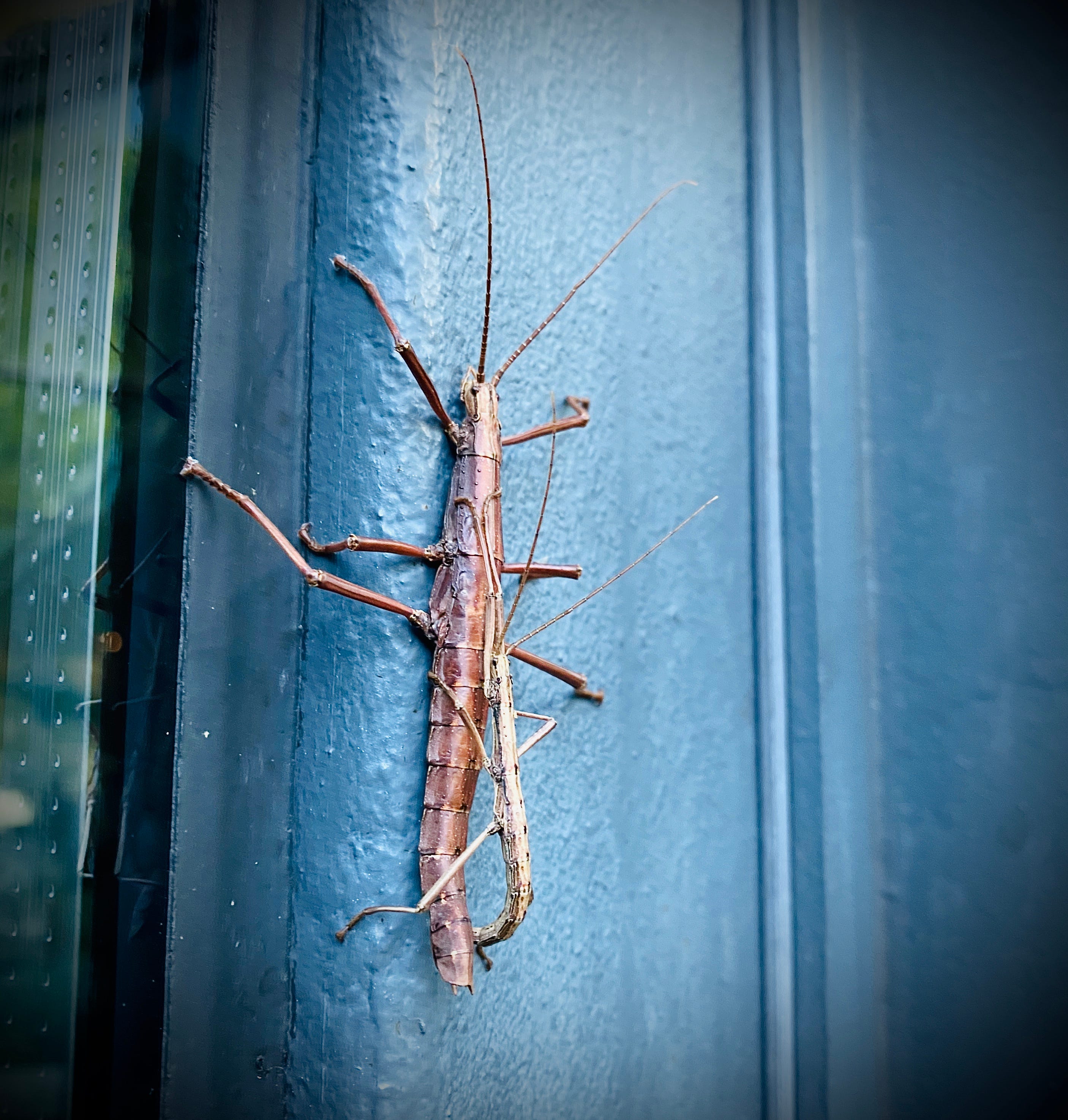 I didn’t think to show her any of the Texas walking sticks copulating on our windows and doors, and she’s not old enough to understand how the diminutive males make the grackles look mellow, prolonging their coitus for days if not weeks in order to keep any other males from diluting their insemination. But I suspect they and the grackles will help me teach lessons about male behavior across species boundaries when she is a little older.