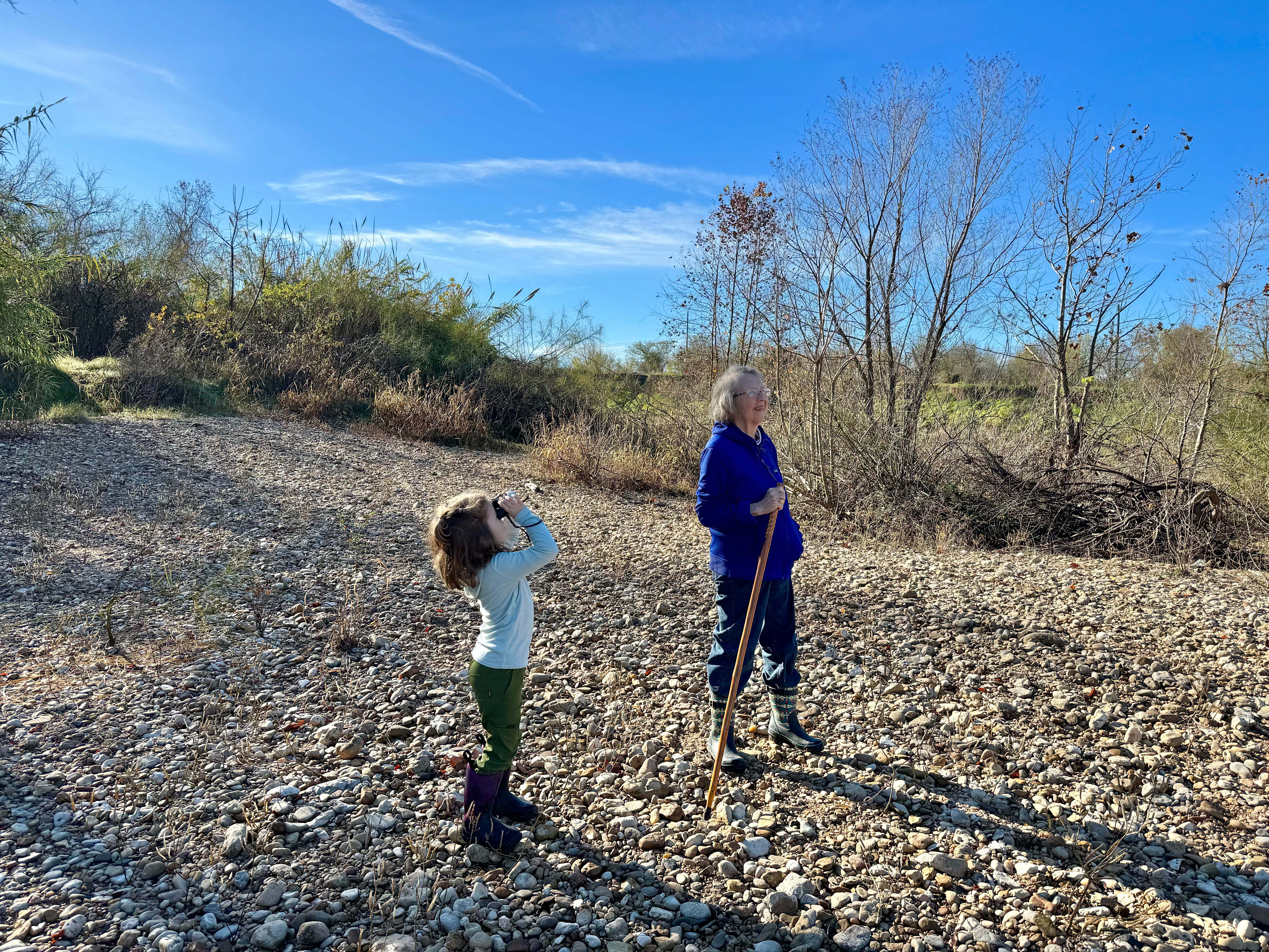 If it’s nice today, my daughter, my mom and I may get back out like we did last Sunday, and see what life comes out in the quiet, as the contrails that mar the morning sky with their accidental glyphs bleed into the atmosphere above the rewilded gravel dredge behind our home, and whatever weird new nature it is that’s taking shape in the world we made starts to show itself.