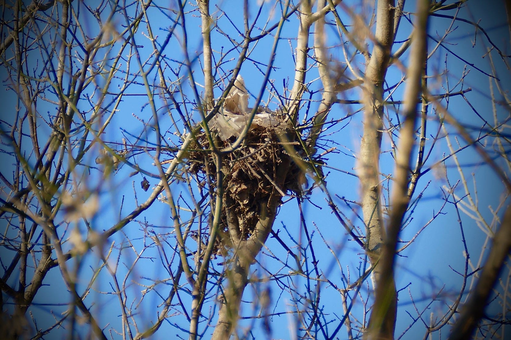 All over the field, you could also see the native wildflowers coming up through the cover, persistent and resilient, proof that the erasure of what was here before is never as complete as it seems. The cardinals and tits were busy building their nests, and so were the hawks that roost in the tall cottonwoods. I noticed one insulated with the same kind of industrial materials as the cardinals more consistently salvage from this urban habitat.