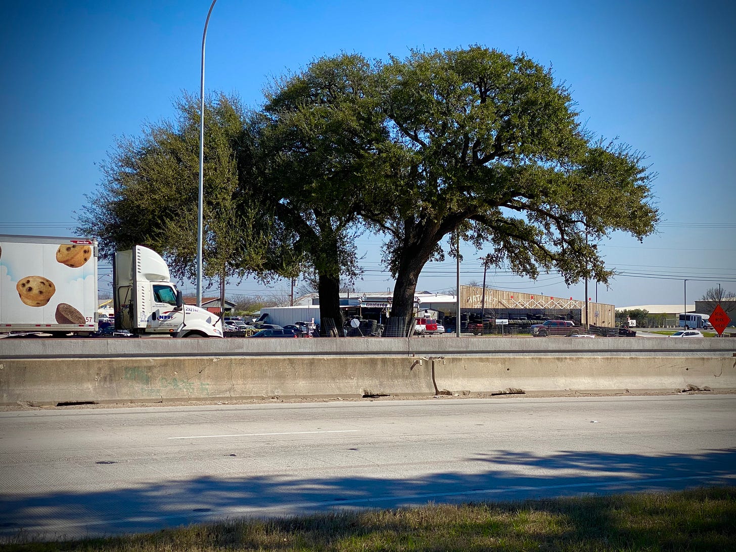 All along that highway stand huge live oak trees, many of which look to have been there longer than anything else around them, giving you an idea of just how old that road is. The trees are getting pretty crowded as the camino that once was a trail turns into a highway and now a major tollway. As I emerged and worked my way north, the big empty trucks raced each other down the feeder to get filled back up from the nearby pits with tons of gravel to help build the new high rises of downtown. You can see those towers in the distance when you cross the bridge, a 21st century horizon that makes the river look even more out of time than it is.