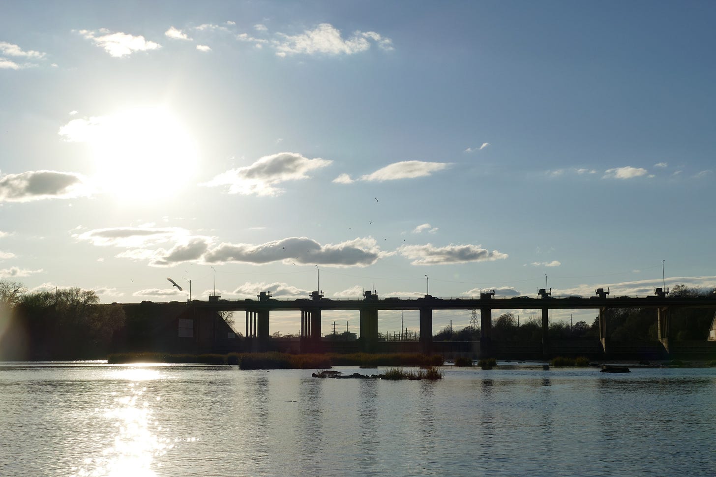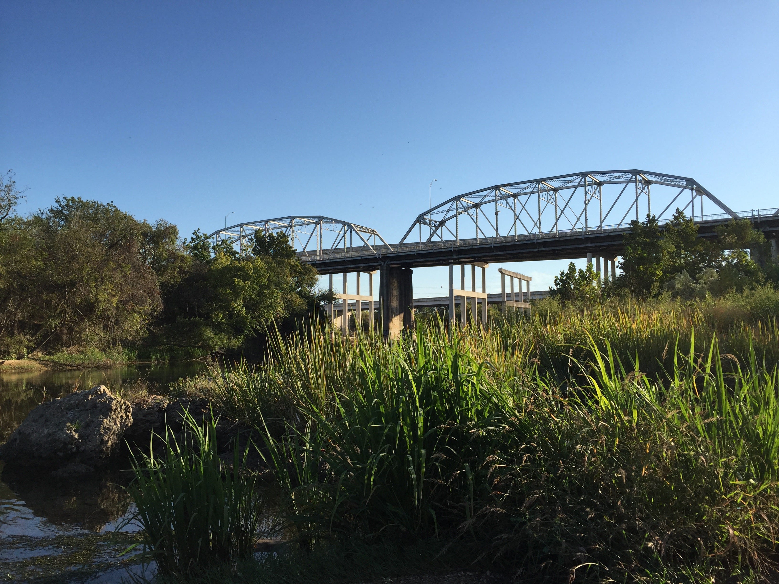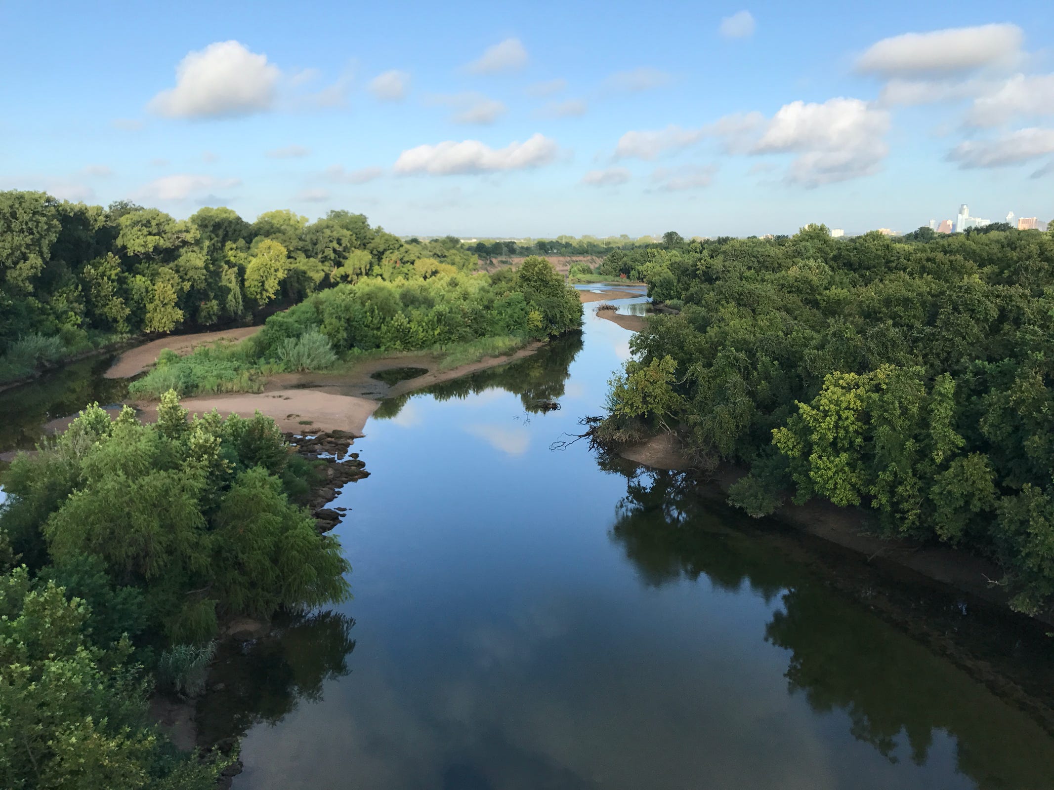 I first discovered this stretch of river not long after I moved here in the 90s, headed to the new airport they built from a decommissioned Air Force base, where they used to fly B-52s over our southern neighbors. When you drove over the old bridge, you could see it down there, a stretch of what looked like essentially wild river, with lush green woodlands on either side, nestled in the eastern edge of the city. I took my then-Cub Scout with me—he was the same age our nephew is now. We drove around cloverleaf frontage roads behind the industrial park until we found the rugged landing underneath the bridge, and paddled it one Saturday morning in the innocent days before 9/11, when this town was infused with the mania of the Long Boom.