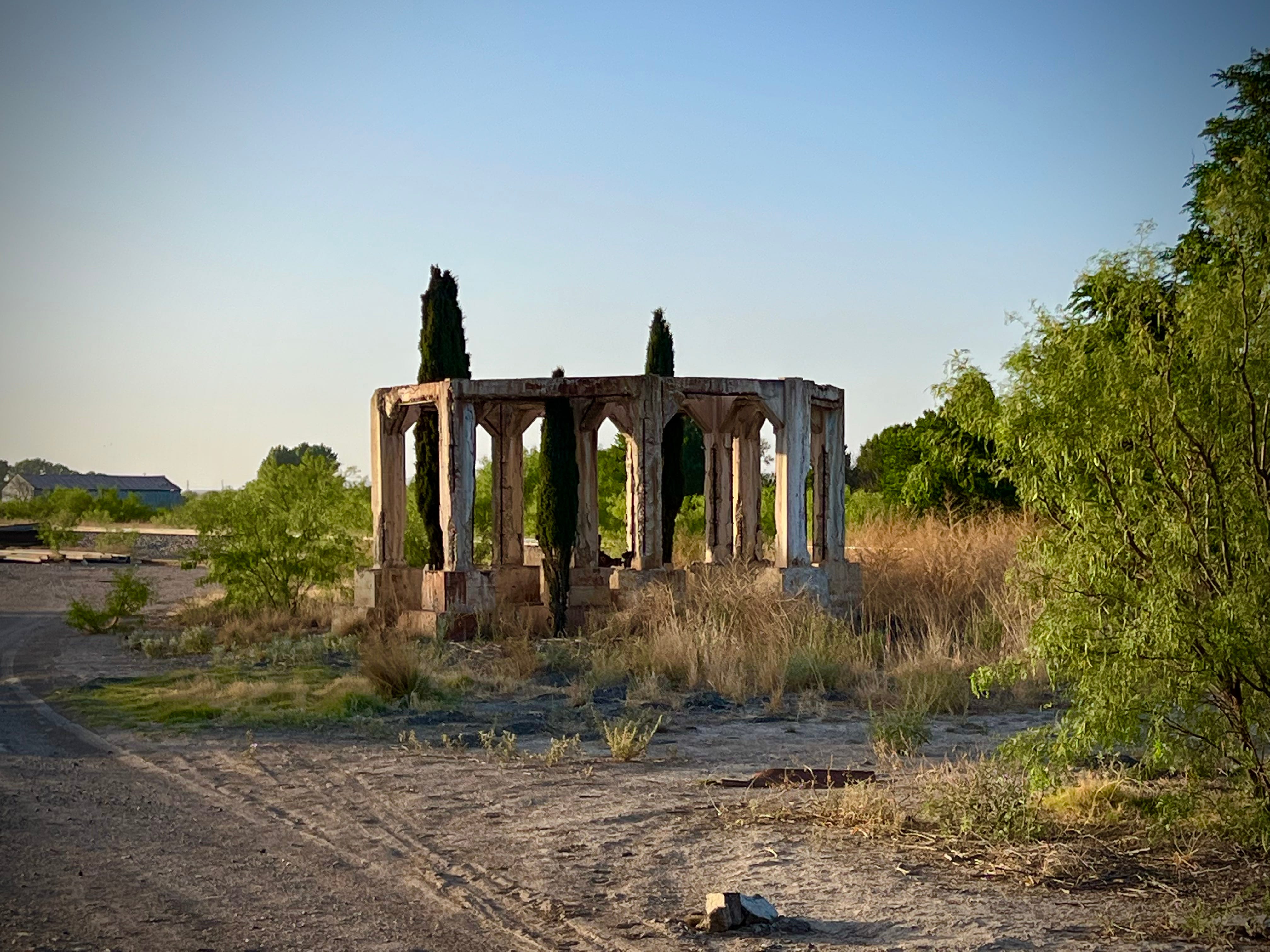 At daybreak my daughter and I went for a wander about the little town named after the Plain of Marathon by the ship captain turned railroad surveyor who helped found it. We saw a road runner, and followed a trail down by the railyard that led us to an octagonal relic rung with Italian cypress trees that looked like it might have been the temple of some redneck Olympian, or a rail baron replica of Böcklin’s Isle of the Dead. Something about it provoked my daughter’s juvenile intuition, and she insisted we turn back. We needed to get to our final destination anyway, the town named by a railroad executive’s wife after a character in The Brothers Karamazov.
